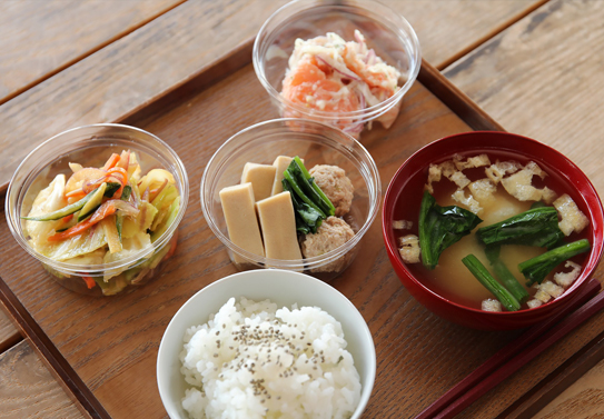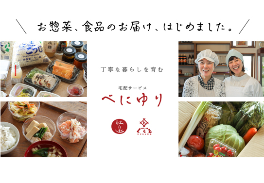 地元の食材で楽しむ身体に優しいお惣菜の店「紅玉」と、麹のチカラを活かした体の内側から元気になる料理の店「くらを」がチームになって地域の食材や私たちが選んだ調味料をお届け致します。