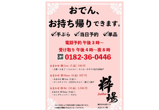 横手市 ★はデリバリー・ケータリング・配送等のサービス有