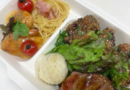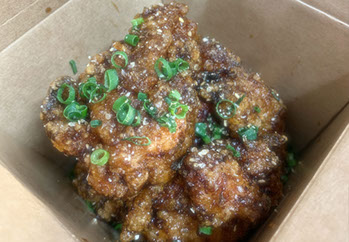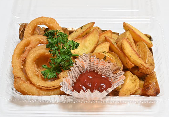 おつまみBOX(唐揚げ3個、エビマヨ2尾、ビーフステーキのセット)¥1100