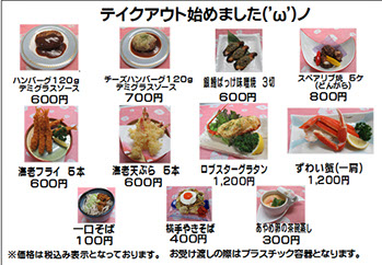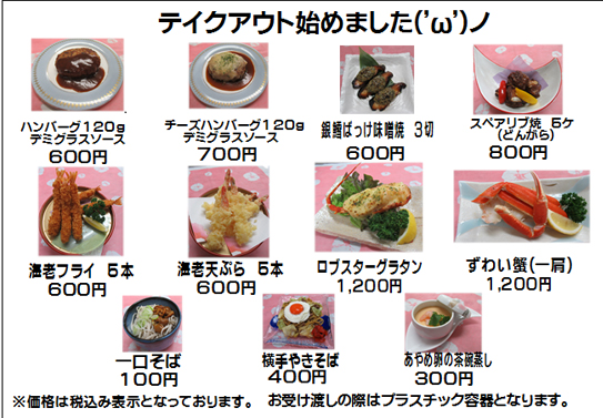 上記以外にもグランドメニューよりテイクアウトが可能です。
