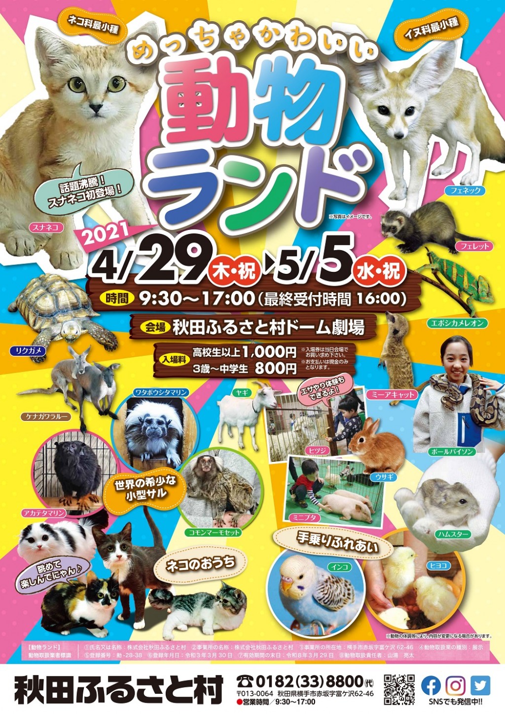 秋田ふるさと村では、今年のGW「めっちゃかわいい動物ランド」を開催。