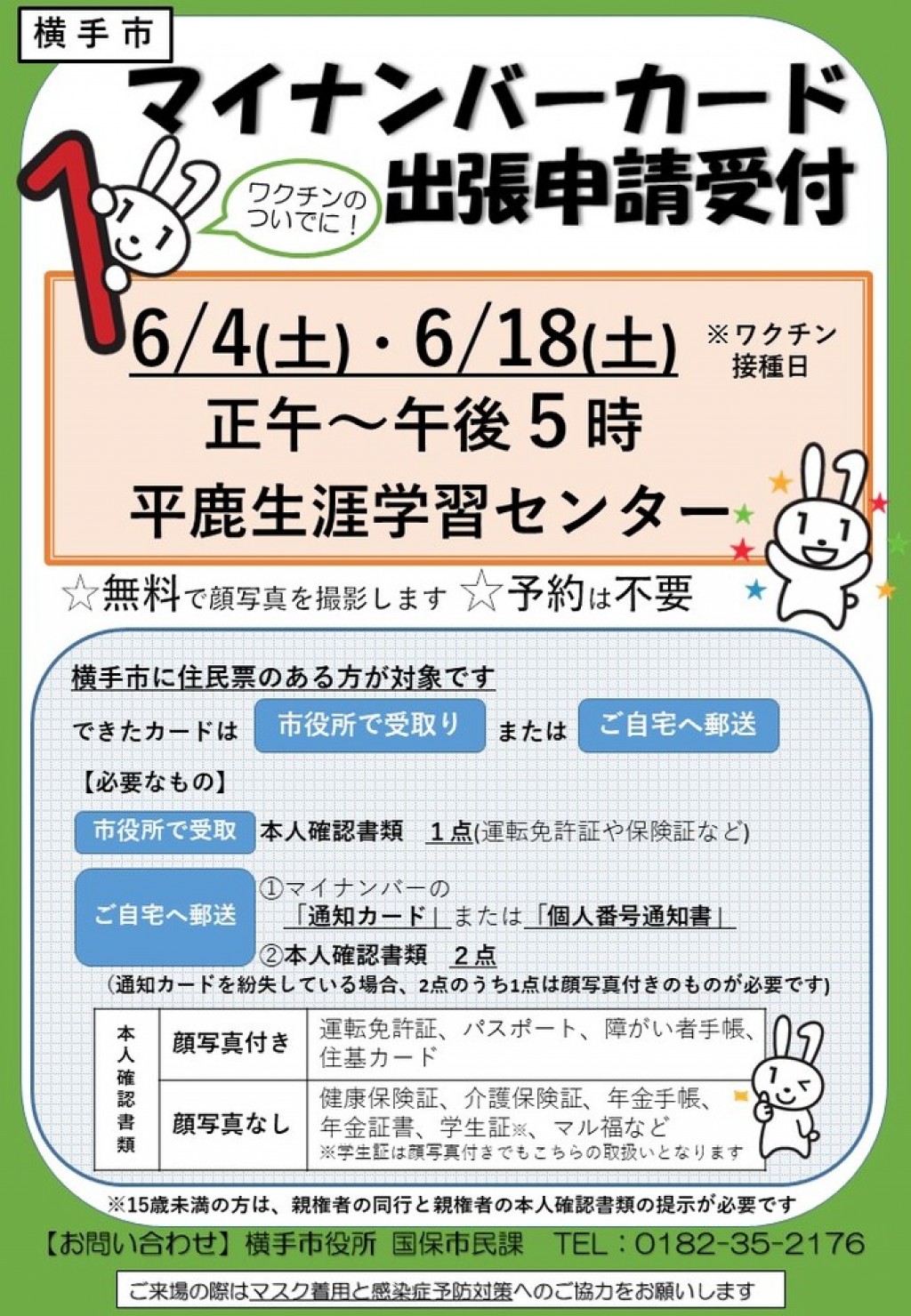 平鹿生涯学習センターワクチン会場でマイナンバーカード申請しませんか