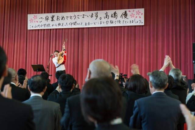 横手市出身のシンガーソングライター高橋優さんが3月12日に行われた母校・秋田県横手市立山内中学校の卒業式にサプライズで登場!