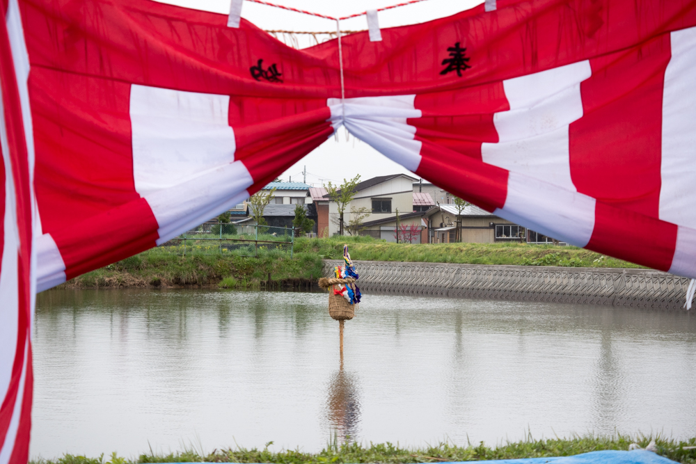農作業が本格的に始まる前に、五穀豊穣・家内安全・水の恵みなどを祈り沼にぼんでんを納める「沼入りぼんでん」が5月1日、横手市醍醐の荒処地区の弁財天沼でおこなわれました。