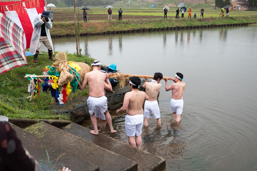 300年以上の歴史を持つ民族行事で、新田開発の成就祈願と豊作を祈って行われたのが由来とされている「沼入りぼんでん」