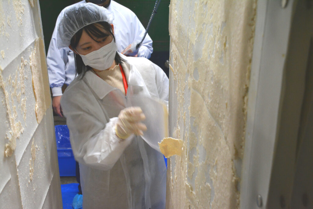 見学の時期によって体験内容は異なるそうですが、今回は酒粕剥がしを体験しました。
