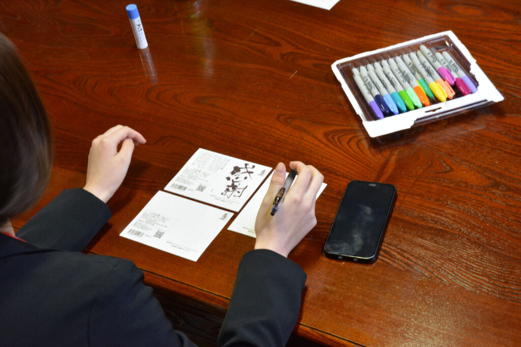 今回ラベルを作るお酒を、記念すべき初任給でお世話になった方へのプレゼントにする人も多く、感謝の想いをラベルに描いていました。