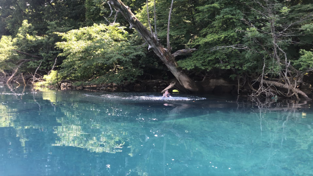 水が本当に綺麗で。ちょっと進むと青く透き通って底まで見えました!