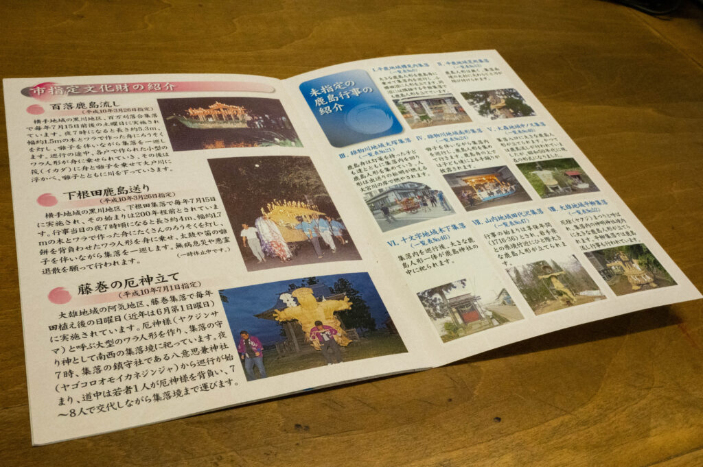 現在は近隣の集落と力を合わせて鹿嶋祭りを行う地域が出てきたり、鹿嶋祭りをはじめとする文化を保護するNPO法人が発足されたりするなど、伝統を守る動きがなされているようです。
