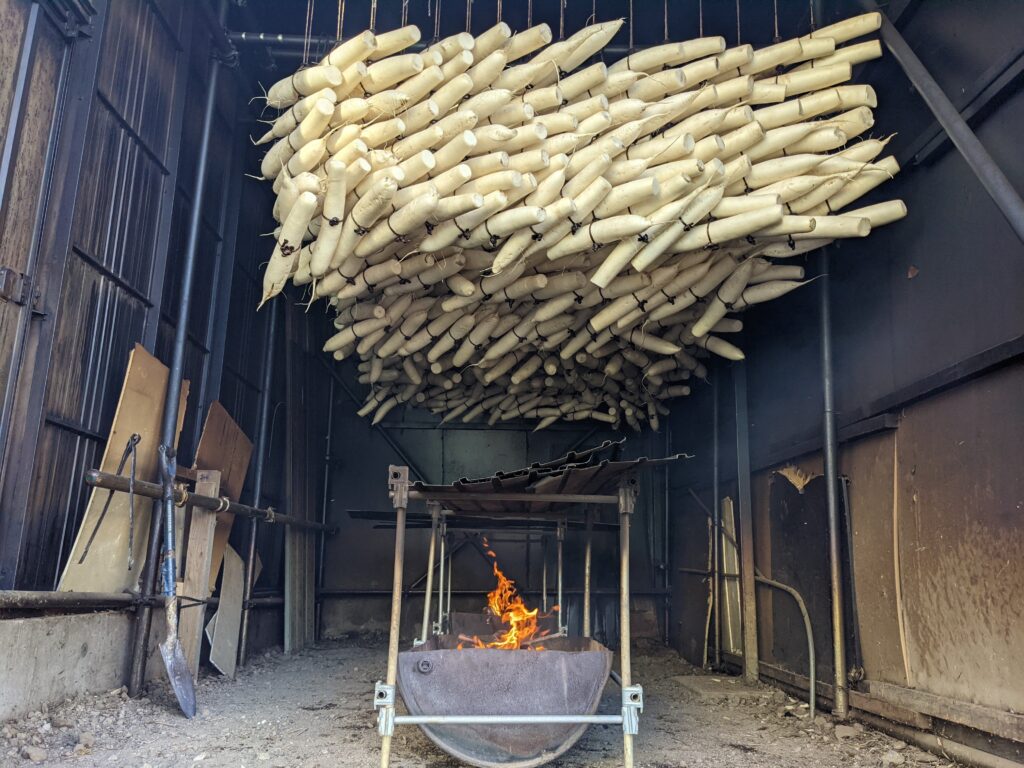 燻し小屋に火入れがされていると煙で目が痛く、大根のそばに近寄ることが出来ないんです…。