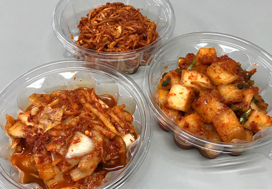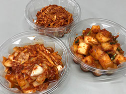 キムチ各種300円~。白菜キムチ、カクテキ、切り干しキムチ、きゅうりキムチの他、季節限定で、関口せりキムチ、わらびキムチ、ニラキムチなどもあります。