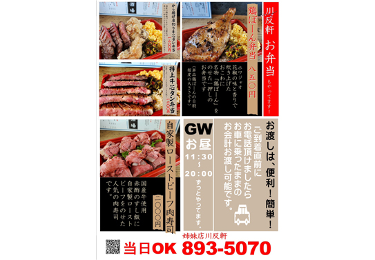 テイクアウト、イートイン(ランチ・ディナー)ができます